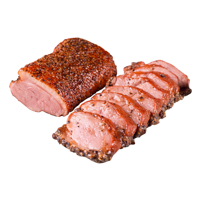 Smoked duck breast with black pepper, Size: n/a, N.W.: 10kg/CTN, Processing: Smoked Frozen, Latin name: Anas platyrhynchos, Packaging: 6pcs/CTN G.W.: 10.8 kg/CTN. -